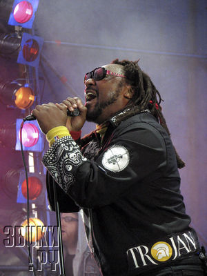 Лидер-вокалист Skindred Бенджи Уэббе (Benji Webbe) - плечистый негр с