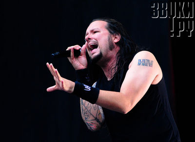 Нынешний звук Korn - это без пяти минут индустриально-готический металл, с тяжелой маршевой поступью, с пространными проигрышами на клавишных, но без пафоса, присущего Тренту Резнору (аскетичность концерта подчеркивает простецкий "задник" с логотипом группы на черном фоне - других декораций в шоу не предусмотрено). Наибольшей творческой свободой на сцене наслаждается новичок Рэй Лузье (Ray Luzier), от души лупящий по барабанам, активно переговаривающийся с драм-техником и раз за разом выдающий сольные пауэр-металлические сбивки. Филди и Манки (Reginald "Fieldy" Arvizu & James "Munky" Shaffer), оба раскрашенные под капитана Джека Воробья, высекают железобетонные риффы с подчеркнутой отстраненностью. Это не концерт Mogwai, конечно, но свой ритуальный оттенок у происходящего имеется.