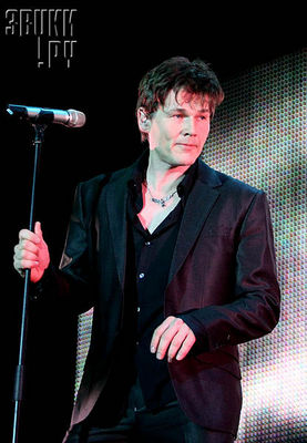 Однако вернемся к A-Ha, благо те уже играют "Riding The Crest". Звук и впрямь неплох, достаточно громкий чтобы прокачать большой зал, но при этом чистый и, главное, без каши и ненужных отражений. На сцене "люди в черном". На переднем плане – Магне (Magne Furuholmen), Мортен (Morten Harket) и Пауль (Paul Waaktaar-Savoy), наряженные в костюмы. Сзади – еще два участника: барабанщик и второй клавишник, обставленный железом. Перед ним компьютер, стойка синтезаторов и даже парочка гитар, видимо дядька большой универсал.