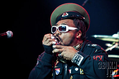 Этот парень настолько крут, что остальные музыканты даже не пытаются что-то из себя строить и спокойно трудятся в тылу: Майки Димус (Mikey Demus) на гитаре, Дэн Пагсли (Dan Pugsley) на басу, Dirty Arya за ударной установкой. Глядя не прыжки и пантомиму темнокожего фронтмена, я подумываю о том, что исход жителей Ямайки на британские острова – это, возможно, самая продуктивная трудовая миграция в истории современной музыки. Они просто рождены, чтобы петь. Английские же бледнолицые ребята рождены, чтобы играть на гитарах. В результате, когда они вместе качают, зал просто ходит ходуном, как на каких-нибудь Faith No More.