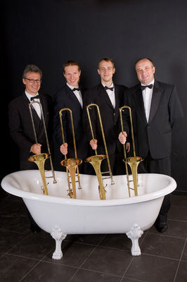 И это ещё не всё. Напомню, что когда Леонид Утёсов организовал в Ленинграде в 1928 г. свой оркестр, то он назвал жанр, в котором выступал его оркестр, театральным джазом, или теа-джазом, тем самым уравнивая в правах музыкальную и театральную составляющую творчества оркестра. Мы, конечно, не придумывали, как в оркестре Утёсова, под каждого музыканта своего характерного персонажа, но с тромбонистами так сложилось само собой. Ведут себя на сцене музыканты "Тромбон-Шоу" по-разному, что тоже добавляет в шоу дополнительные визуальные нюансы. В нашей программе существуют текстовые связки между песнями, часть которых мы заготовили с Костей заранее, а часть рождается спонтанно по ходу концерта.