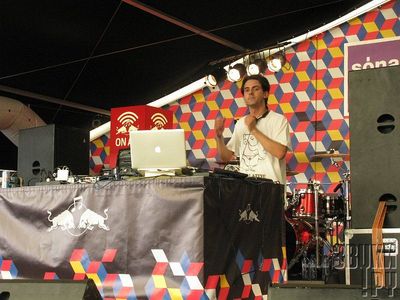 Отобедав, в той же деревне цепляем кусок DJ-сета Agoria (техно, ничего выдающегося), а после него остаёмся слушать Atmosphere. В этом году тут много хип-хопа с претензией на альтернативность – немалую часть мы упустили вчера, отправившись на Стива Райха (выбор был очевиден), так что самое время навёрстывать. Atmosphere – американский рэпер, выступает с битмейкером и стильным дредастым клавишником. Живьем дядечка оказывается куда менее альтернативен, чем казалось. "Здорово, Сонар! Тут типа это... фестиваль электронной музыки, не пойму, чё я тут делаю, ну ладно, давайте типа жечь!". Ну и, типа, жжёт. Весьма прямолинейный хип-хапчик, "yo wazzup" и всё такое. А тут, вы не поверите, действительно фестиваль электронной музыки.