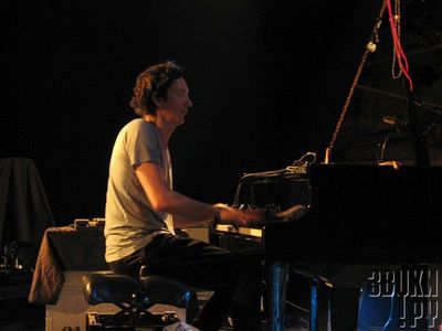 Идти, благо, есть куда – в "холле" в семь играет один из моих любимцев, немецкий неоклассик Hauschka. Народу поначалу собирается много, но продолжительной давки тут не ожидается – не бывает такого, чтобы тусовщики слишком долго выдержали бы тихую и медленную музыку. Так и оказывается – пьесе к третьей подойти к сцене уже не составляет труда. Фолькер Бертельман (Volker Bertelmann) сидит за роялем, а аккомпанирует ему барабанщик и перкуссионист из Финляндии. Содержание у их музыки вполне классическое, а вот форма – не очень, уж больно много в этом элементов саунд-дизайна, пусть и акустического. Рояль у Фолькера препарирован, к тому же немец не только играет на клавишах, но и дёргает струны и водит по ним разными предметами, извлекая из инструмента лязг, шорох и шелест. Барабанщик занят примерно тем же – то цепочной погремит, то палками по тарелке поскребёт. Звучит это всё потрясающе красиво и необычно - в записи у Hauschka есть струнные и духовые, но на концерте пары инструментов более чем хватает. И ведь парни даже эффектами не пользуются. Под конец немец и финн удостаиваются продолжительной овации, к которой я с радостью присоединяюсь – ожидания оправдались на все сто.