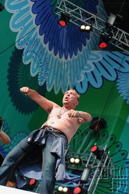 Выступление PIL стало, наверное, самым классным в программе: Лайдон, в длиннополом сюртуке и белых шортах, начал с "(This Is Not A) Love Song". Драйв выдают такой, что толпа сперва не понимает, что же происходит - то ли гроза возвращается, то ли вообще - приближается торнадо. Энергетика со сцены прет совершенно сумасшедшая, а Лайдон с лицом заправского шамана то сверкает глазом в толпу, то дирижирует публикой, а то начинает выкрикивать традиционные антирелигиозные, антиклерикальные и вообще асоциальные лозунги. Джонни пребывает в любимом образе: он и вождь, и кумир, и звезда, и собутыльник: на "Albatross" вытащенная на сцену бутылка коньяка уже наполовину пуста.