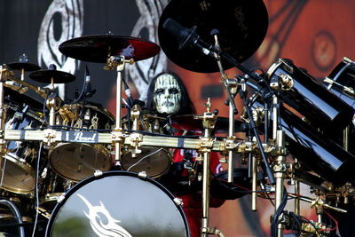 Из новых песен играют "Psychosocial", но и ее народ встречает не менее бодро, чем старые вещи, вовсю подпевая Тейлору. Джим Рут (Jim Root) и Мик Томсон (Mick Thomson) на пару выдают зубодробительные соло, а на финальной "Surfacing", опять же, по сигналу Крэхана, начинают поднимать и вращать барабанную установку Джордисона, так что тот в определенный момент вообще играет практически в вертикальном положении, ни разу не сбившись с ритма! Крэханскую платформу тем временем облепляют Фенн, Уилсон и электронщик Крейг Джонс (Craig Jones), так что сценическое действо начинает напоминать финал фильма "Вий" - много суеты и безумств инфернальных существ.