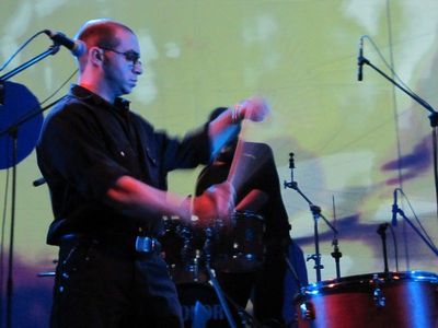 Следом за ними на сцене оказались гости из Санкт-Петербурга, лихие арт-индустриальщики Cyclofillydea. Группа также существует не первый год, и успела выступить с многими музыкантами – от Ника Рокнрола до того же Deutsch Nepal, правда, у себя в Питере. Будучи свидетелем уже нескольких безумных шоу группы, я в очередной раз отметил их профессионализм и изобретательность в музыке, которая, являясь далеко не самой простой, не отпускает с первого до последнего момента. Все в группе – сплошные контрасты. Музыкальный костяк – гитарист и мастер игры на ноут-буке – внешне холодны и сосредоточены. Танцевальная шоу-группа (она появляется на сцене в разных концертах в различных сочетаниях и состояниях) – наоборот, нацелена на публику и творит полнейшее индустриально-медицинское безумие. Если электронная часть их музыки холодна и ритуальна по своей сути, то гитара прямо таки бушует и надрывается, приправляя Порядок душистым и наваристым Хаосом. Традиции индустриальной культуры остаются в их творчестве сохранены все до единой – при этом группа имеет свое собственное лицо и шарм. А в выступлениях Cyclofillydea сквозит интеллект, «наслышанность» самыми разнообразными и странными музыками, какие только возможны в мировом авангарде, а также особая питерская ментальность, которая проявляется у местных групп, даже играющих совершенно различную музыку. Одним словом, коллектив прекрасно представил российскую сцену на мероприятии международного характера.