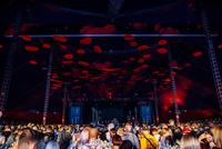 На противоположном конце площадки в шатре играет в прятки с толпой Mura Masa. Дело в том, что юный протеже Деймона Албарна привез с собой одну из приглашенных вокалисток с дебютника - бунтарку Бонзай (Bonzai). Девушка поет и зачитывает не только свои куплеты, но и партии Charli XCX и Desiigner и явно перетягивает одеяло, то есть внимание публики, на себя.