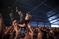 Дремать и мечтать под звуки стареньких Букла можно вечно, но, к сожалению, сеты артистов на Flow не бесконечны и приходится уходить из уютного зала Воймалы на фестивальное поле, которое, надо сказать, забито по самое не балуй — с главной сцены с как будто приросшей к лицу ухмылкой начинает проповедовать Алекс Тернер. Музыканты Arctic Monkeys нынче — статичные актеры второго плана, звезда Tranquility Base Hotel + Casino - фронтмен. Интересно, как к этому относятся другие участники коллектива, но ответ на этот вопрос мы, вероятно, никогда не узнаем, ведь интервью - ха-ха! - раздает тоже Тернер. Впрочем, паства довольна: поклонники и поклонницы (последних, ясное дело, куда больше) знают песни с новой пластинки наизусть, а на проверенных вещах вроде "Do I Wanna Know?", "I Bet You Look Good on the Dancefloor" и "R U Mine?"и вовсе срывают голос.